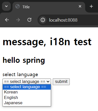 <h1 th:text="#{title}">메시지, 국제화 테스트</h1>