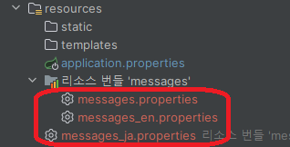 다루게 될 메시지 파일의 이름(기본 messages)와 인코딩 (기본 UTF-8)를 application.properties에 작성한다. 이 둘은 기본값이라 생략해도 무방하다.
