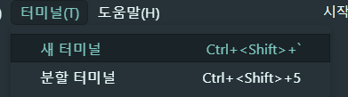 1. Ctrl + Shift + ` 혹은 밑의 방법으로 터미널을 연다.