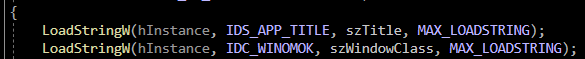 - szTitle 변수에 IDS_APP_TITLE에 해당하는 문자열을 가져와서 넣는 기능